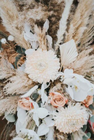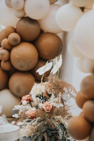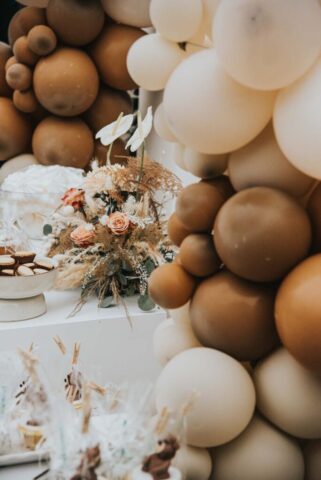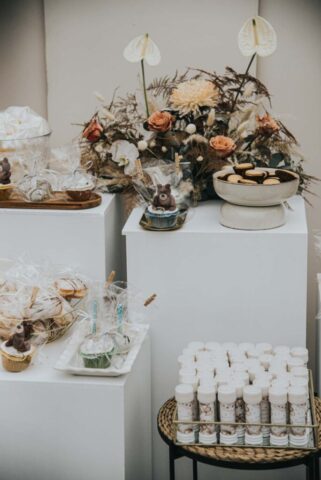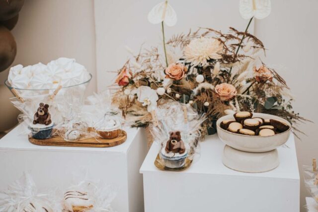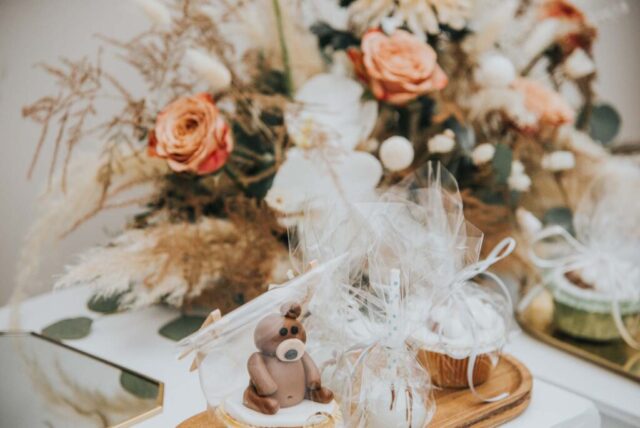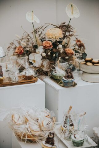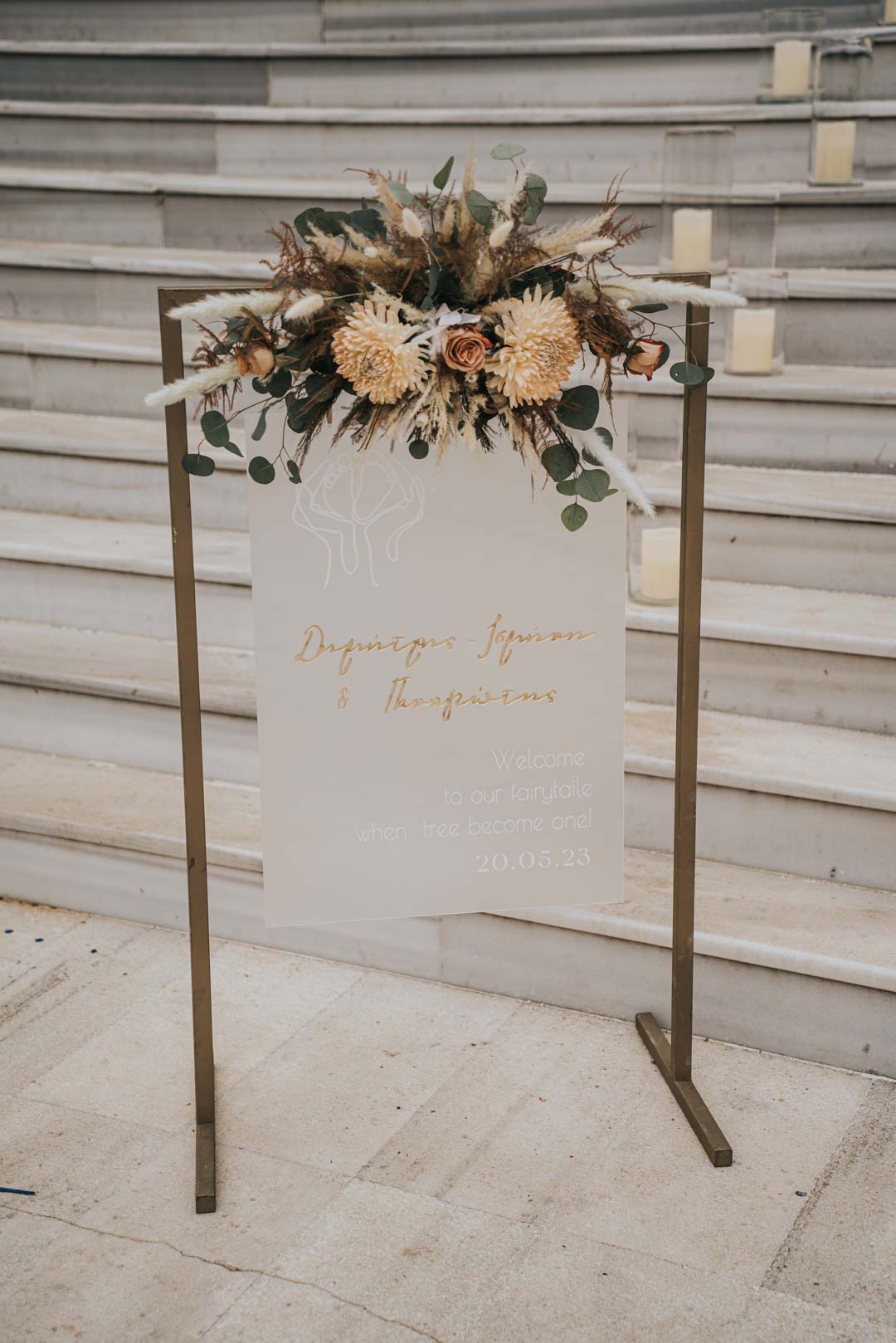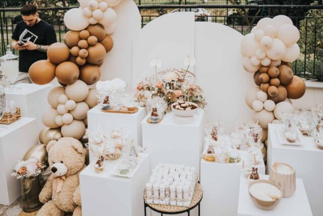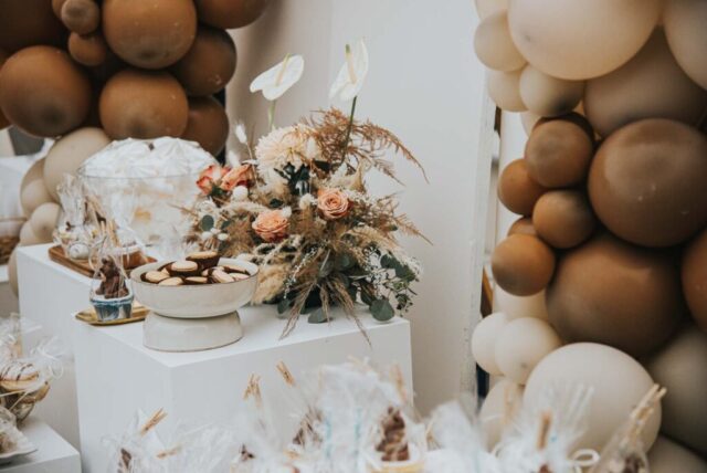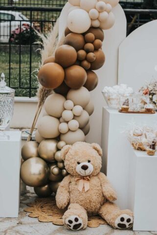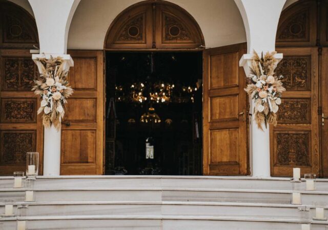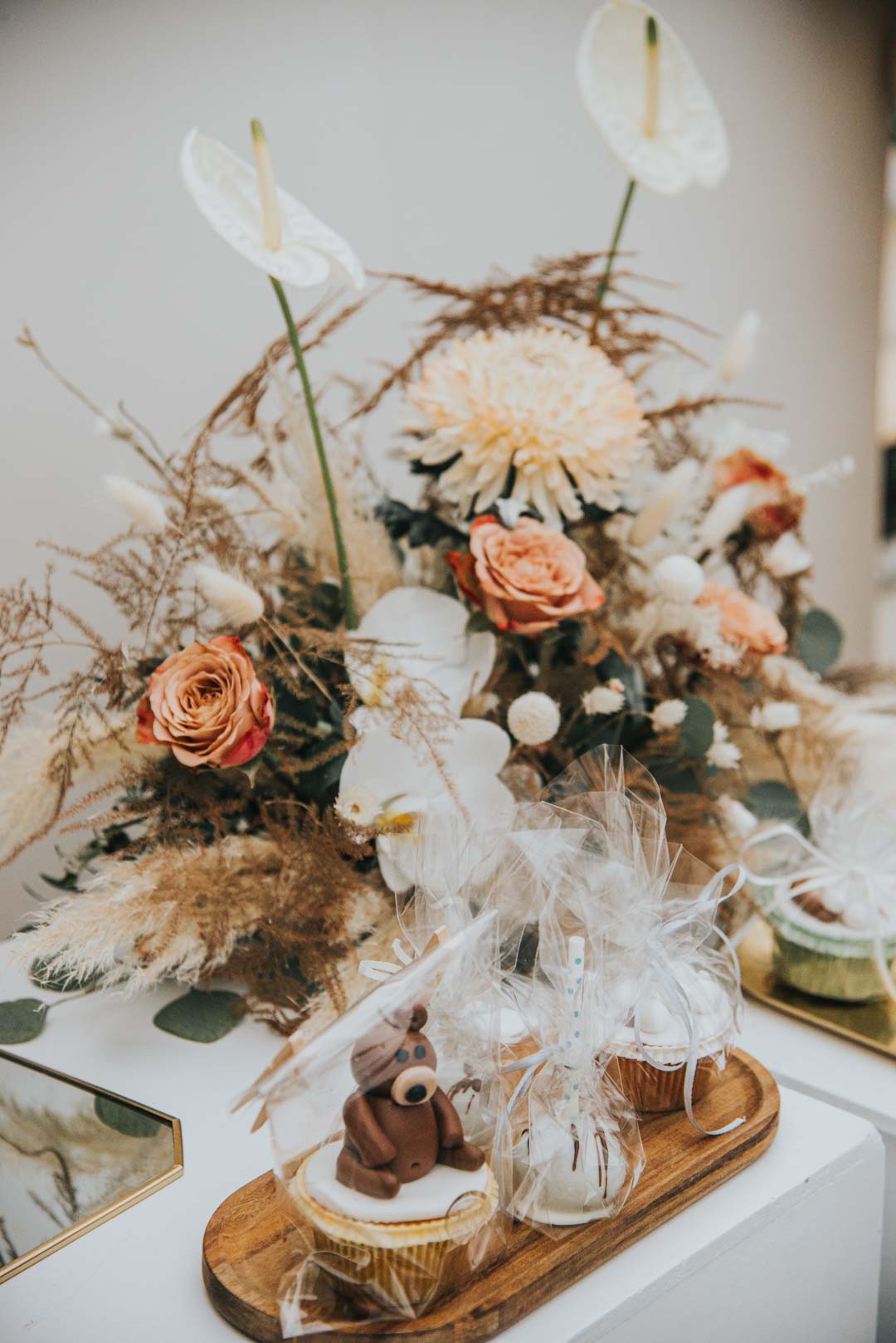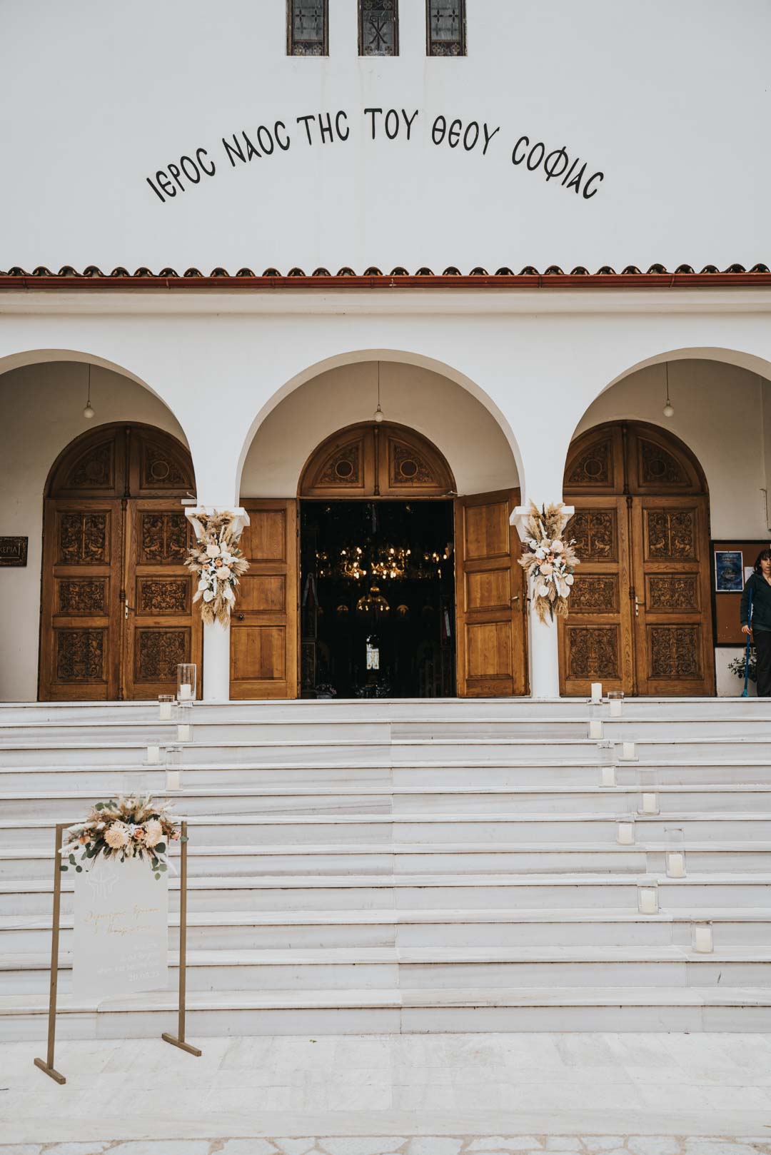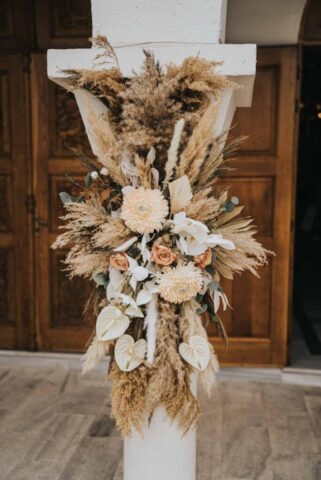 Ismeni and Dimitris knew from the beginning how they wanted their wedding day to be and also the baptism of their little son! Earthy shades, pampas and orchids were the direction he gave me for decorating the wedding and the church! And of course, the decoration of the candy table for their little one’s christening with a teddy bear theme and lots of balloons would not be missing!