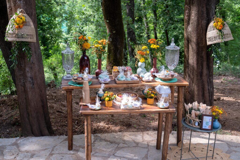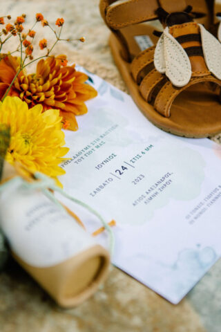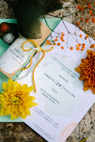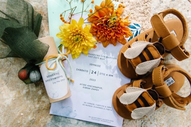 A baptism full of colors for little Xristos – Xristoforos in the beautiful chapel on Lake Zirou! Colorful sweets and flowers in yellow orange and green shades! After the sacrament, a meal followed at the “Paradisos” estate!